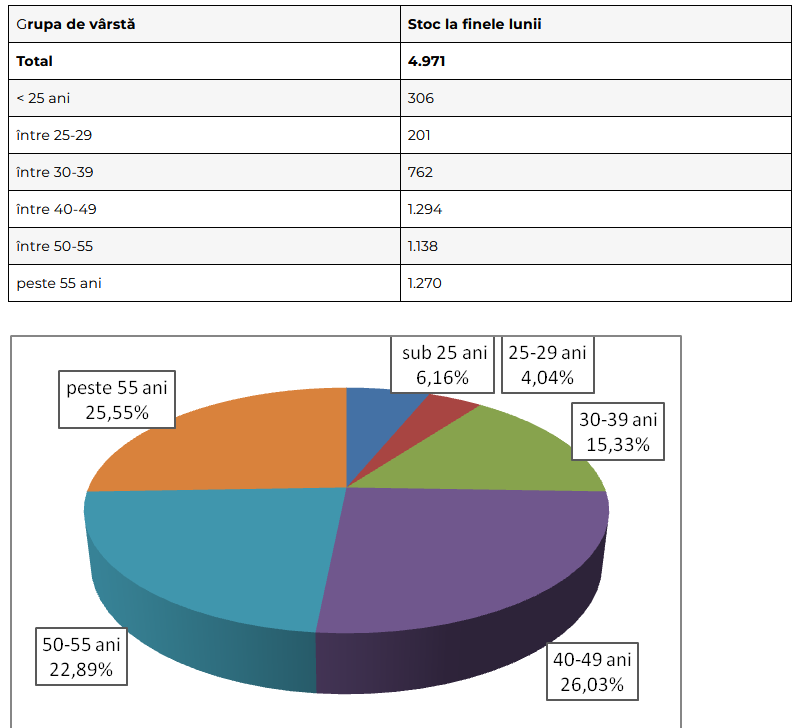 Structura șomajului pe grupe de vârste se prezintă sugestiv astfel: