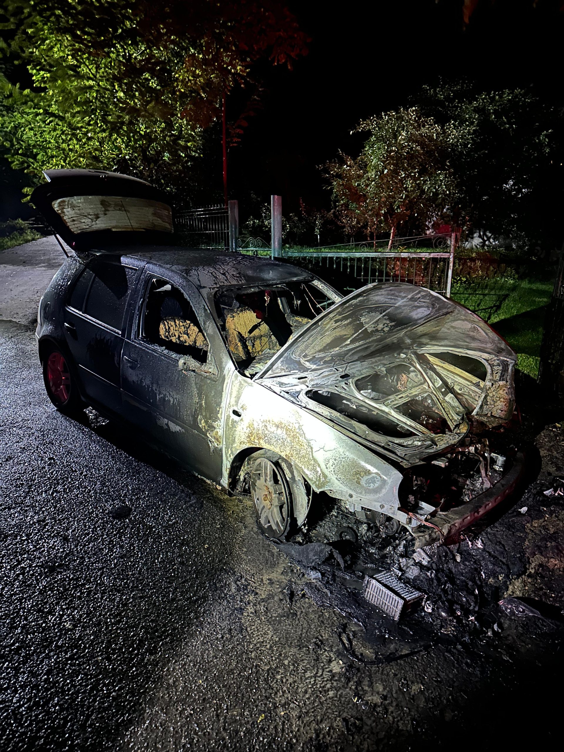 Un autoturism parcat în fața unei gospodării din localitatea Leorda a luat foc, în această seară. Din fericire, nu au fost persoane rănite.