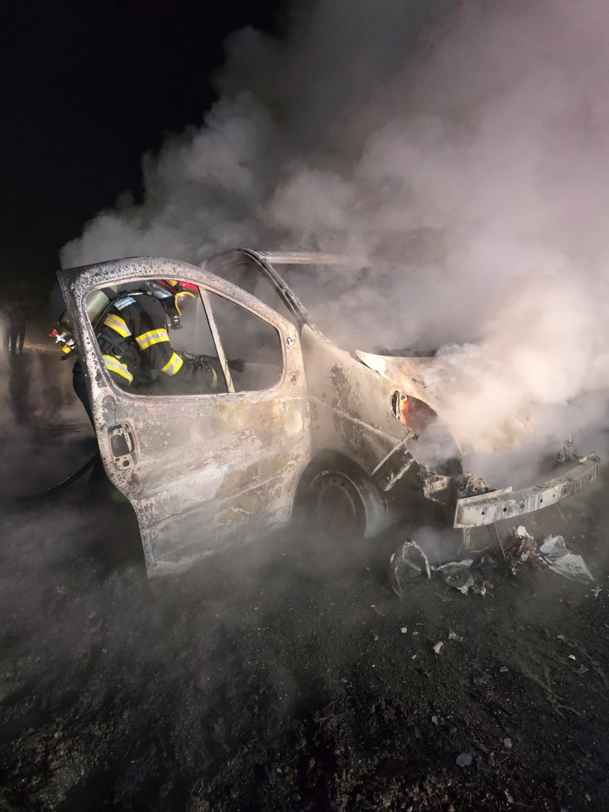 O autoutilitară a luat foc în timp ce se deplasa pe DJ 294 C, între localitățile Zahoreni și Manoleasa, în această dimineață.