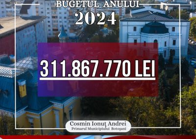 Primăria Municipiului Botoșani anunță aprobarea bugetului pentru anul 2024, în valoare de 311.867.770 lei.