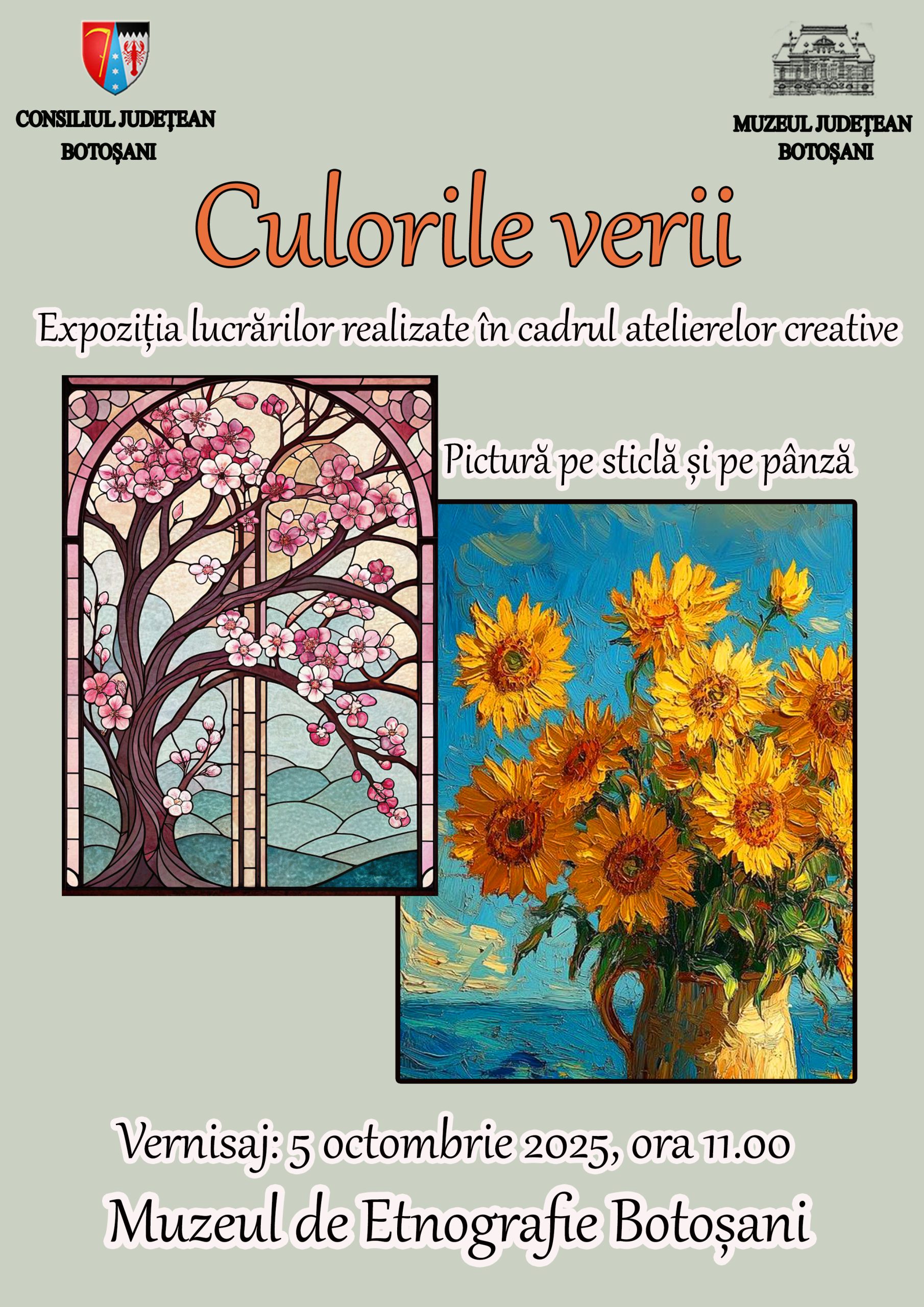 Cultura Ateliere de pictură pe sticlă 14 octombrie 2025Muzeul Județean Botoșani vă invită, în perioada 18-19 octombrie 2025, în...