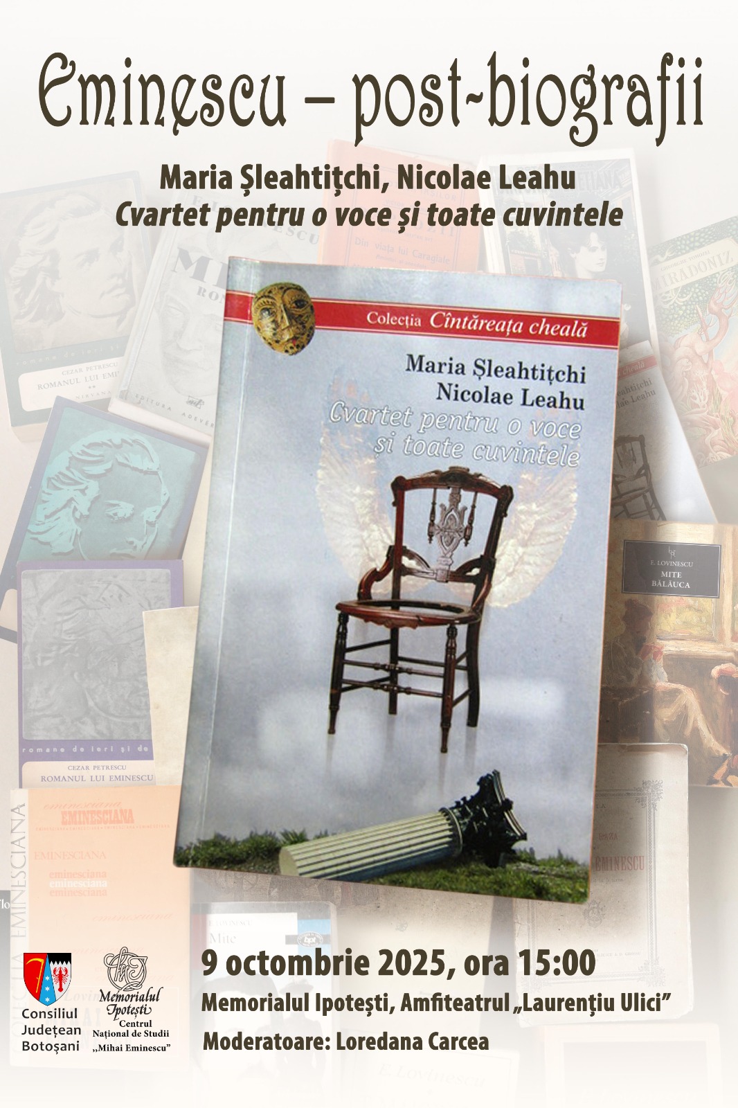 Cultura Eminescu – post-biografii. Discuții cu Maria Șleahtițchi și Nicolae Leahu la Memorialul IpoteștiÎn aprilie 2025, Memorialul Ipotești – Centrul Național de Studii „Mihai Eminescu”,... 5 octombrie 2025