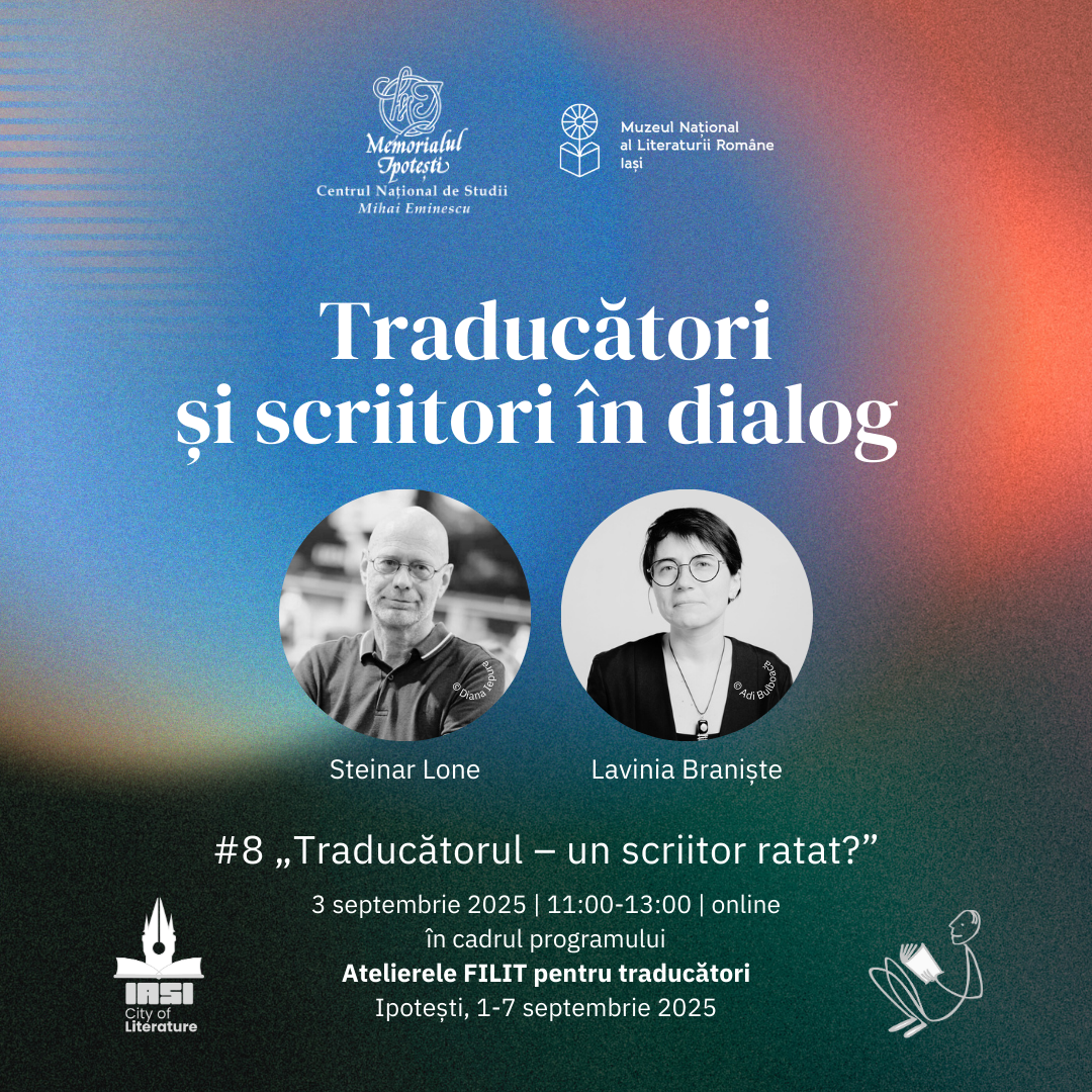 Cultura „Traducătorul – un scriitor ratat?” cu Steinar Lone și Lavinia Braniște ǀ Traducători și scriitori în dialog – episodul 8Proiectul „Traducători și scriitori în dialog”, lansat în 2024 sub auspiciile... 25 august 2025
