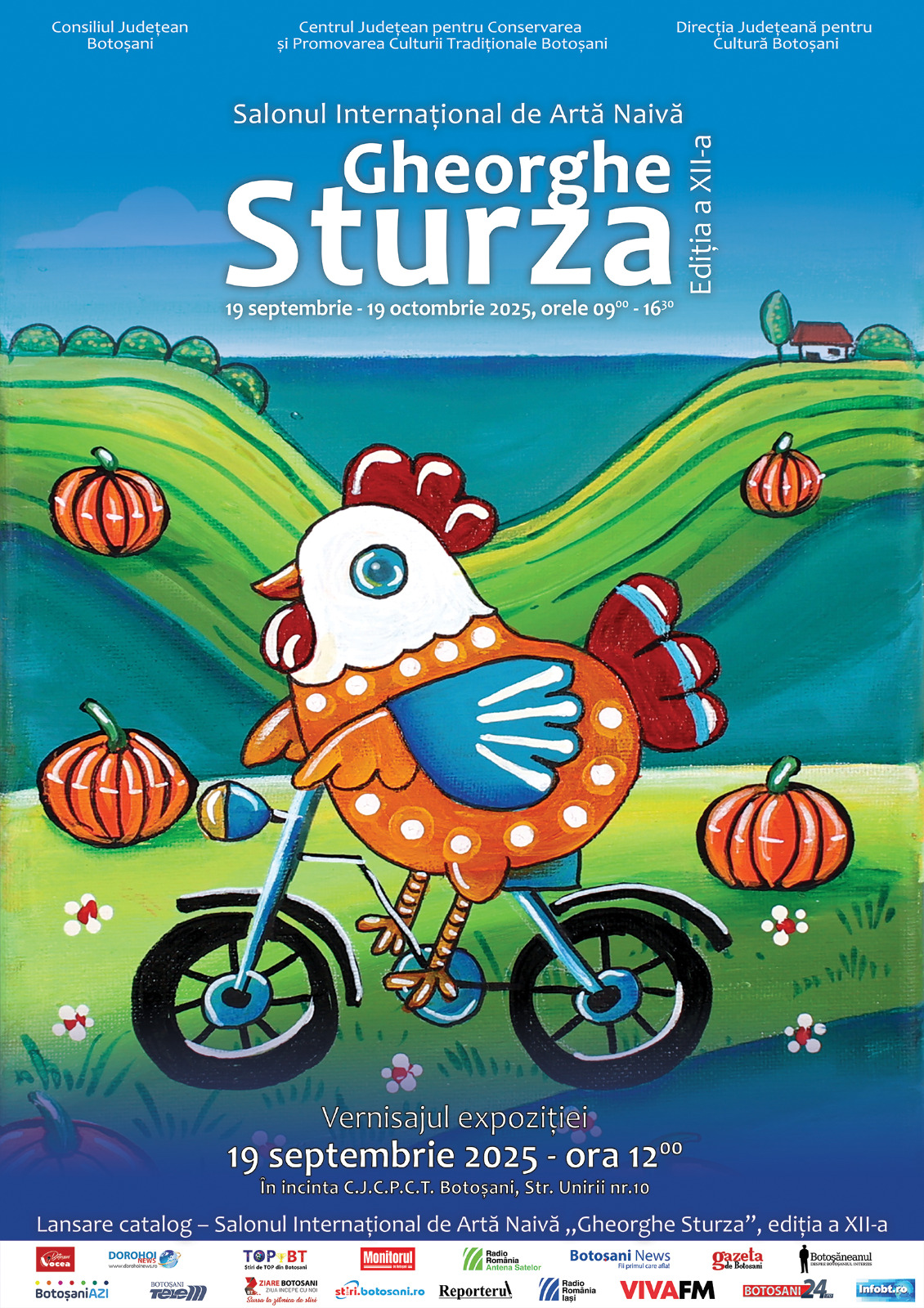 Cultura 19 septembrie – 19 octombrie – a XII-a ediție a Salonului Internațional de Artă Naivă „Gheorghe Sturza”În perioada 19 septembrie - 19 octombrie 2025, Centrul Județean pentru Conservarea și... 26 august 2025