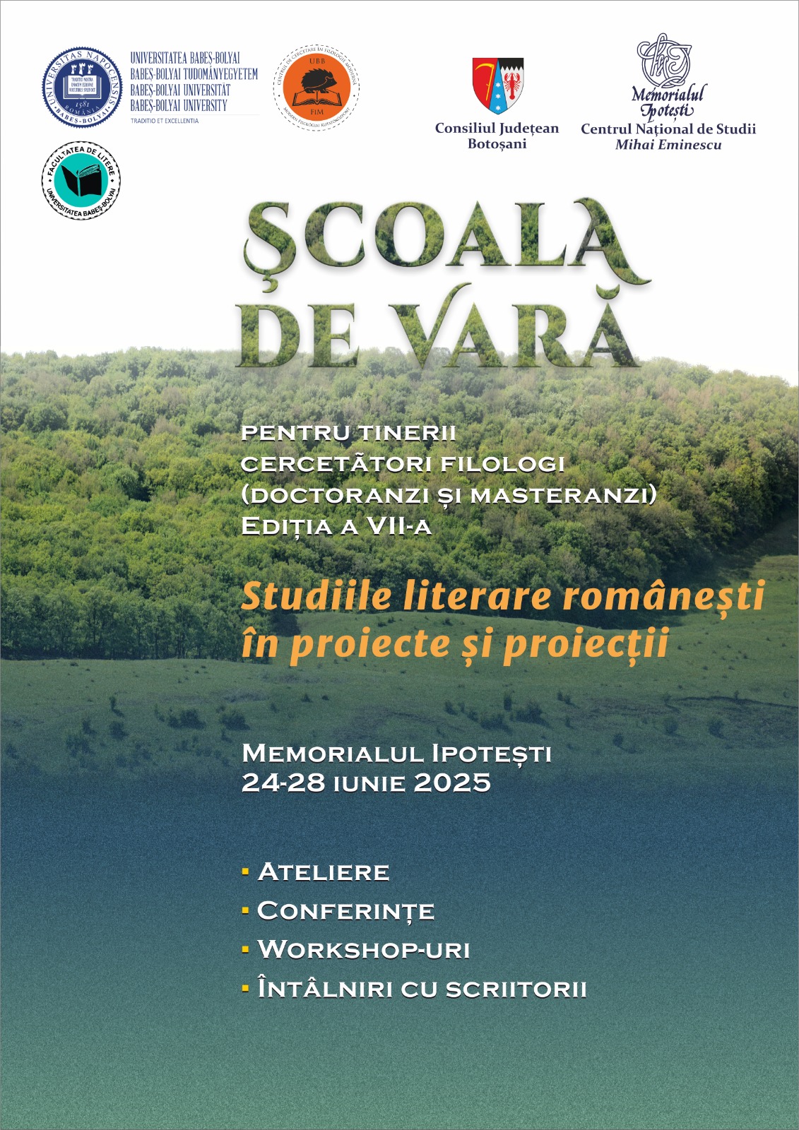 Cultura O nouă ediție a Școlii de vară pentru tinerii cercetători filologi, la Memorialul IpoteștiÎn perioada 24-28 iunie 2025, la Memorialul Ipotești, se va desfășura Școala de vară... 22 iunie 2025