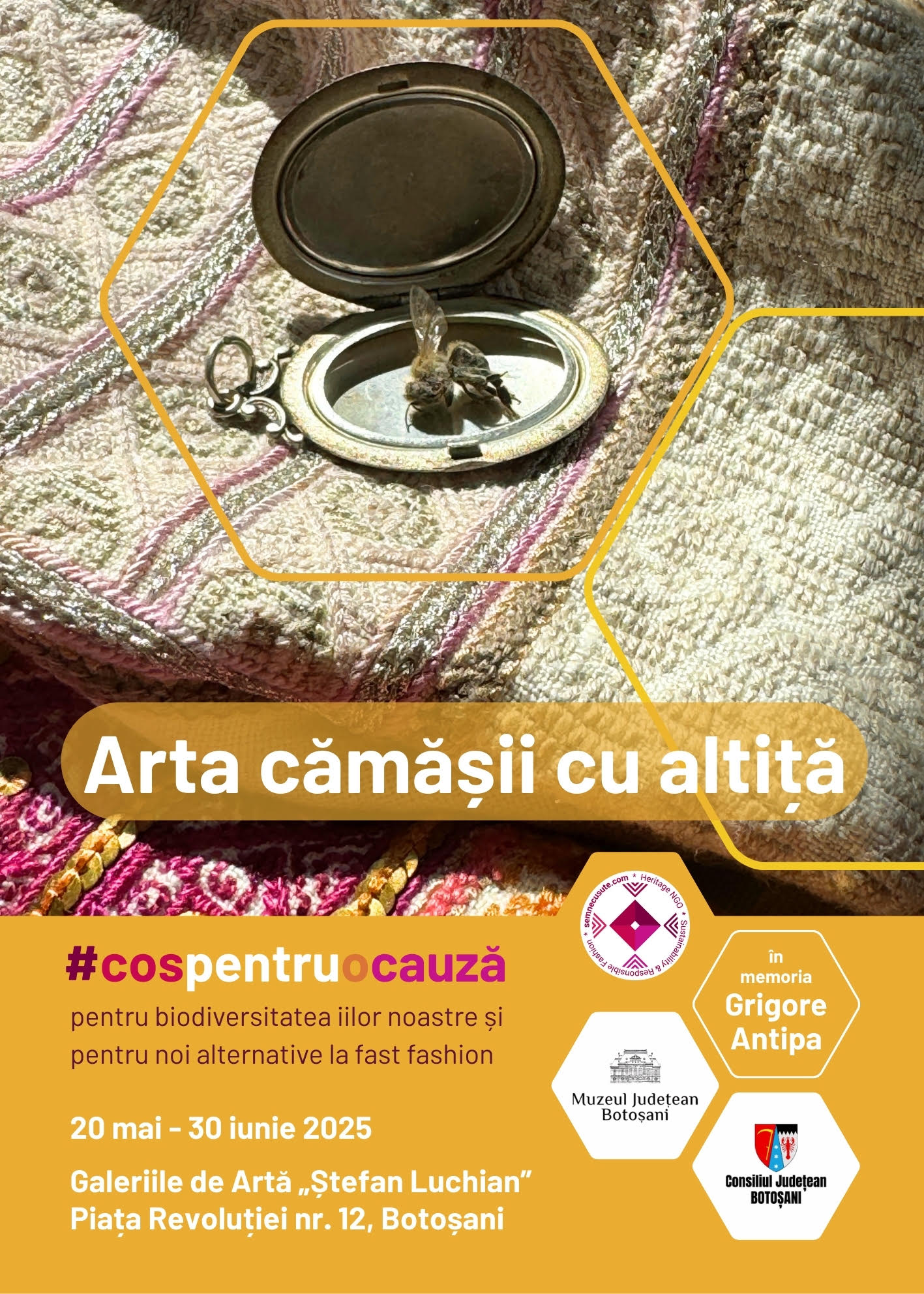 Cultura Expoziția „Arta cămășii cu altiță – cos pentru o cauză”Muzeul Județean Botoșani, Secția de Artă Plastică – Etnografie – Științele Naturii, în... 14 mai 2025