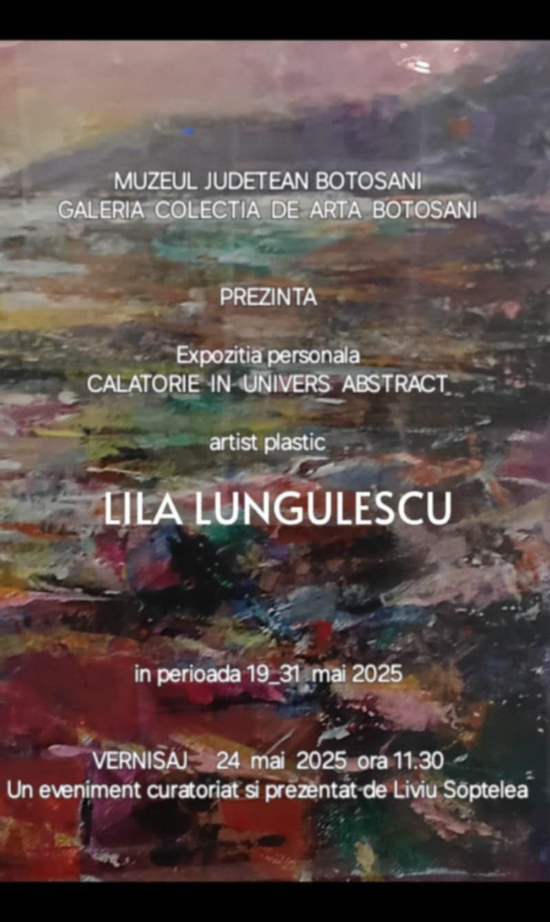 Cultura Expoziția personală Lila Lungulescu – „Călătorie în univers abstract”Muzeul Județean Botoșani găzduiește, în perioada 19-30 mai 2025, în spațiul Colecției de... 21 mai 2025