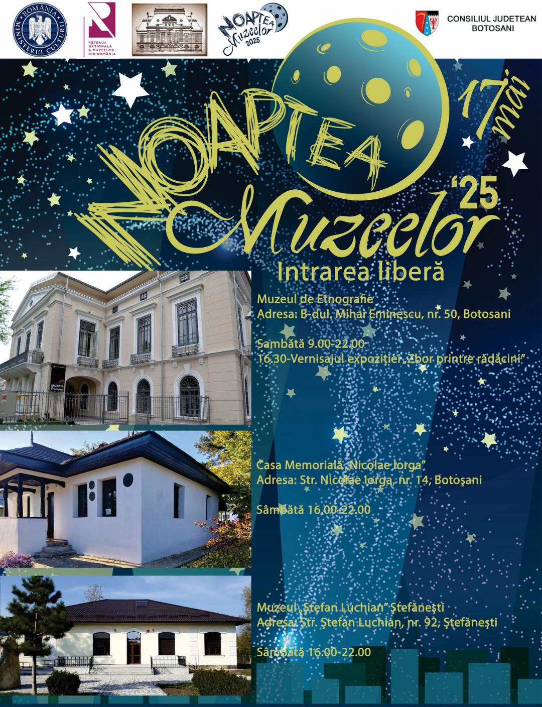 Cultura „Noaptea Muzeelor” 2025 la Muzeul Județean BotoșaniConform tradiției ultimilor ani, Muzeul Județean Botoșani va lua parte și în 2025 la... 13 mai 2025