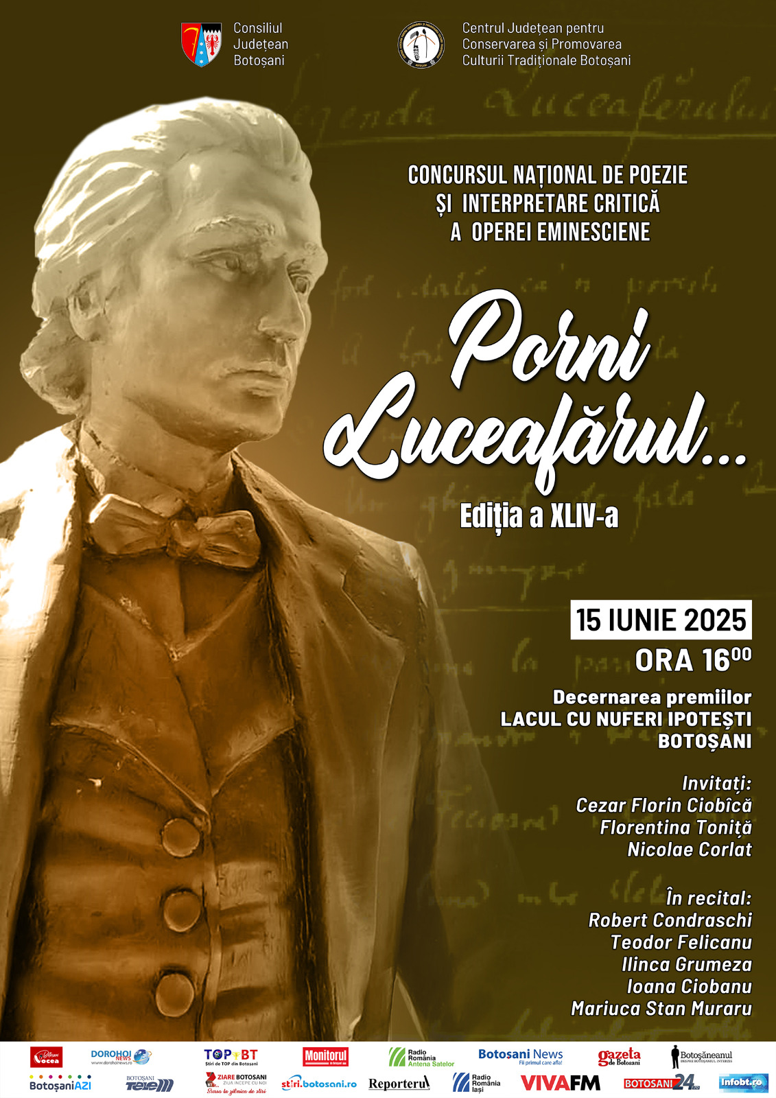 Cultura Botoșaniul se pregătește pentru 15 iunie 2025…La inițiativa Academiei Române, anul 2025 a fost declarat „Anul Eminescu”. La cei 136 de... 14 mai 2025