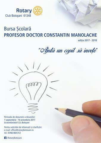Educatie, Social - Educatie ROTARY CLUB BOTOSANI anunta castigatorii Burselor scolare “Prof. dr. Constantin Manolache” oferite pentru anul scolar anul 2017-2018Clubul Rotary Botosani a decis sa acorde prin proiectul “Ajuta un copil sa invete” –... 8 noiembrie 2017