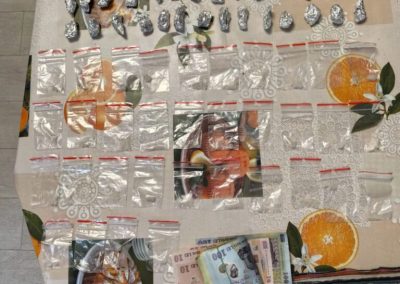 De asemenea, pe parcursul percheziției efectuate, în locuința sa, au fost descoperite și ridicate 34 de doze de substanță cristalină 3-CMC (drog de mare risc) și 37 de doze de canabis (drog de risc) pregătite pentru comercializare, precum și alte mijloace de probă.