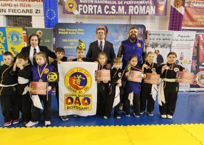 ,, Multumim sponsorilor pentru sustinere , Multumim parintilot/bunicilor/unchilor pentru implicare , rabdare si motivarea sportivilor in plan personal. Felicitam sportivii pentru rezultatele obtinute , pentru munca depusa si experientele de neuitat cu aceasta competitie. Spiritul de echipa a fost omniprezent pe parcursul intregii pregatiri , fiind unul dintre principiile de baza ale organizatiei noastre . Deasemenea suntem onorati de implicarea instructorilor si arbitrilor in dezvoltarea clubului nostru si a QWAN KI DO in Botosani” a declarant Hong Su Marian Ungureanu, centura neagra , presedintele CS DAO Botosani.