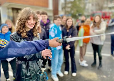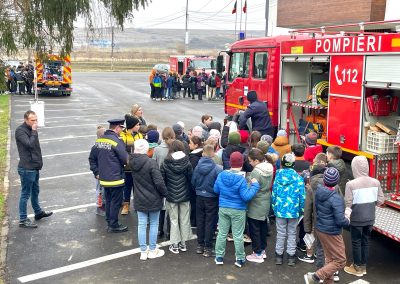 Copiii au aflat și în ce situații pompierii intervin cu autospecialele de stingere cu apă și spumă și descarcerare. Cei mai curajoși au probat echipamentele de protecție folosite în misiuni.