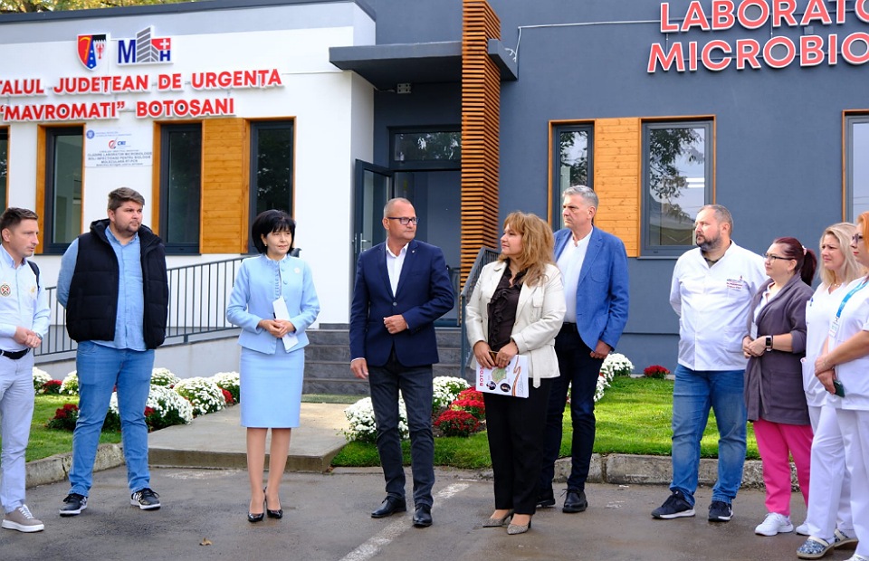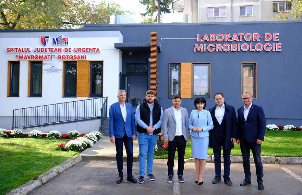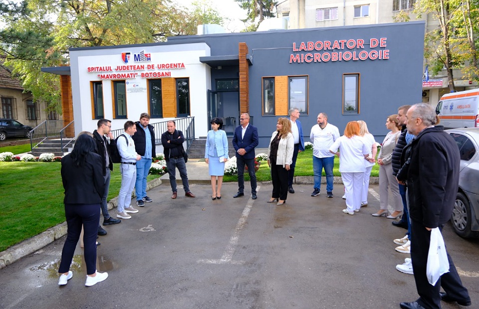 Doina Federovici, președintele Consiliului Județean Botoșani, alături de conducerea Spitalului Județean, reprezentanți ai Companiei Naționale de Investiții și ai constructorului, Simion Tehnoconstruct, au participat miercuri la recepția noului laborator de microbiologie, construit în curtea Secției de Boli Infecțioase.