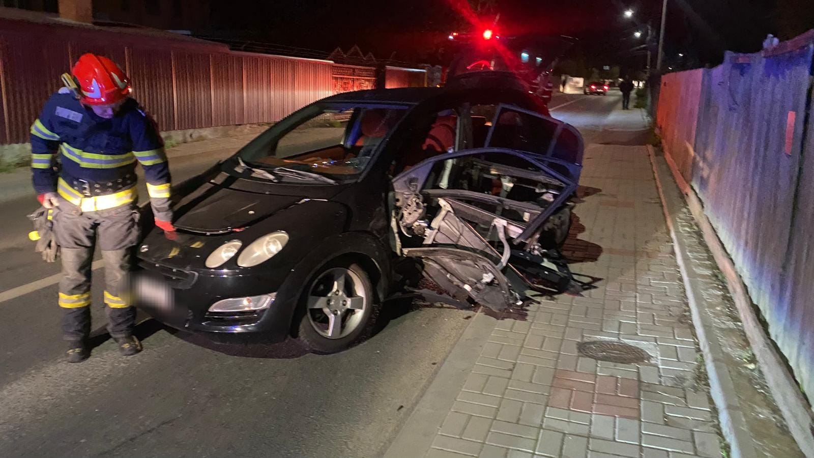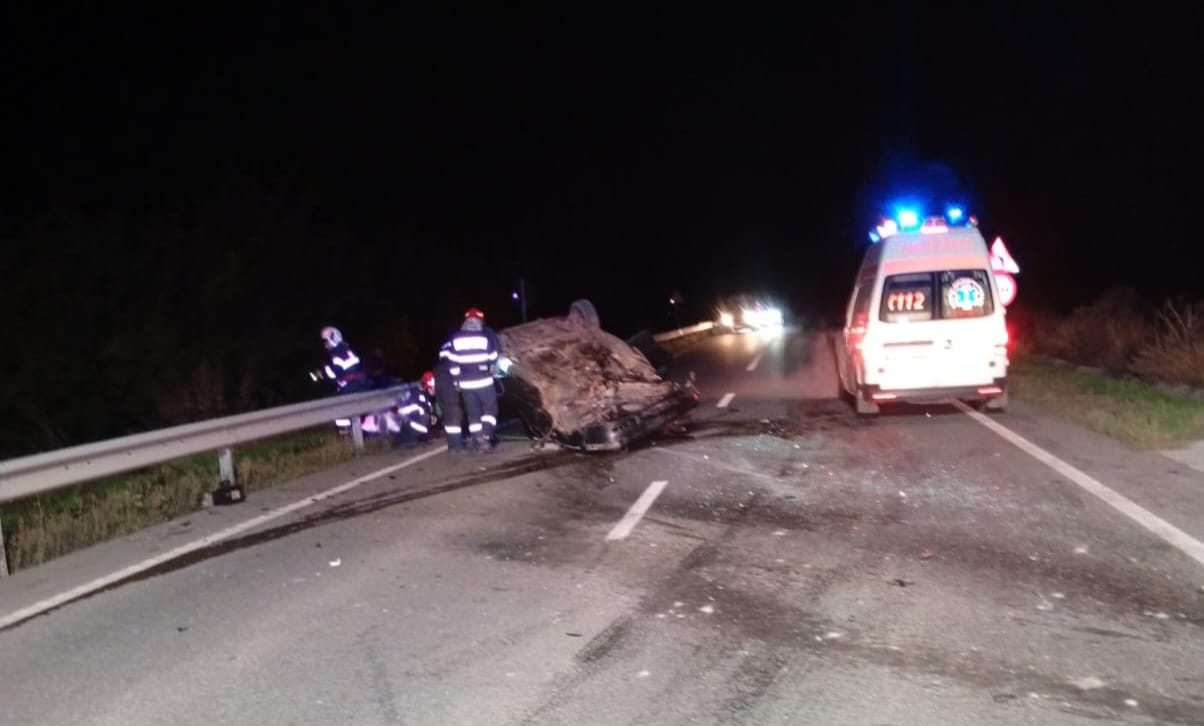 Accident: un autoturism aflat în mers s-a răsturnat după ce a lovit o altă mașină
