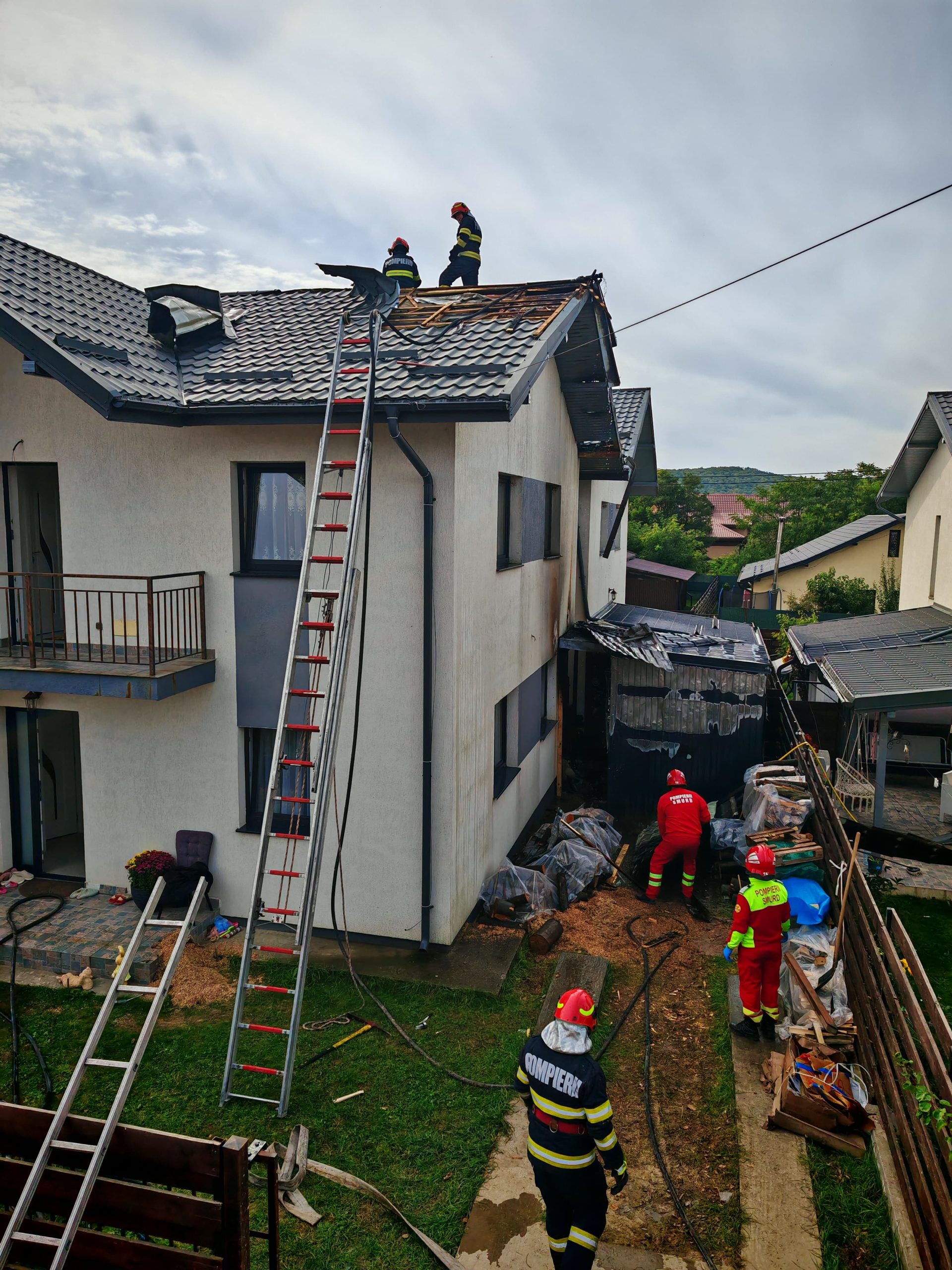 Două case salvate de la incendiu datorită intervenției prompte a pompierilor