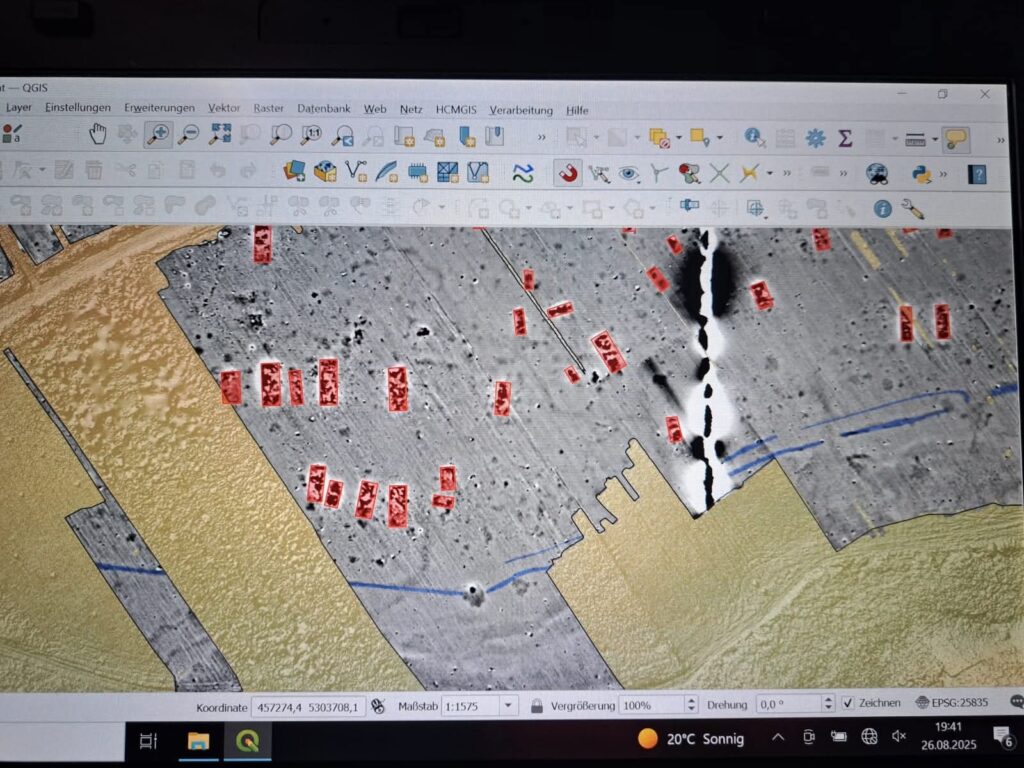Pe lângă scanarea cu magnetometru a suprafeței sitului Văculești-La Prisacă, au fost efectuate șase sondaje pentru verificarea anomaliilor din harta geofizică și prelevarea de probe pentru o gamă largă de analize.