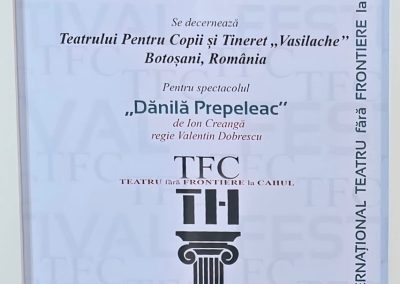 Spectacolul „Dănilă Prepeleac”, în regia lui Valentin Dobrescu, prezentat publicului cahulean a fost răsplătit cu aplauze îndelungate şi apreciat de către juriul festivalului. Trupei Teatrului Vasilache” i s-a conferit diploma pentru spectacolul „Dănilă Prepeleac” şi trofeul festivalului.