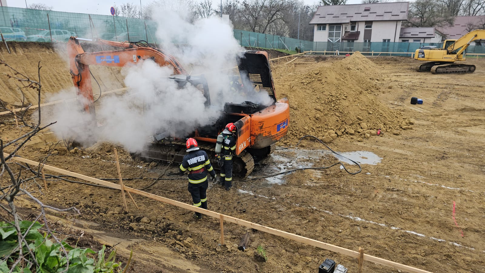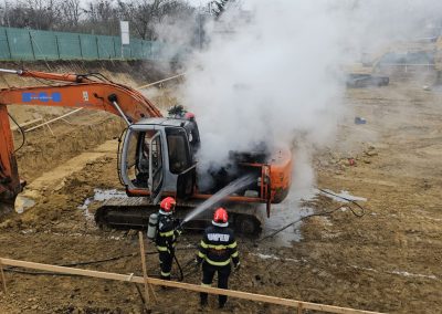 Un utilaj a luat foc în timp ce executa lucrări de excavare pe strada 1 Decembrie din municipiul Dorohoi.