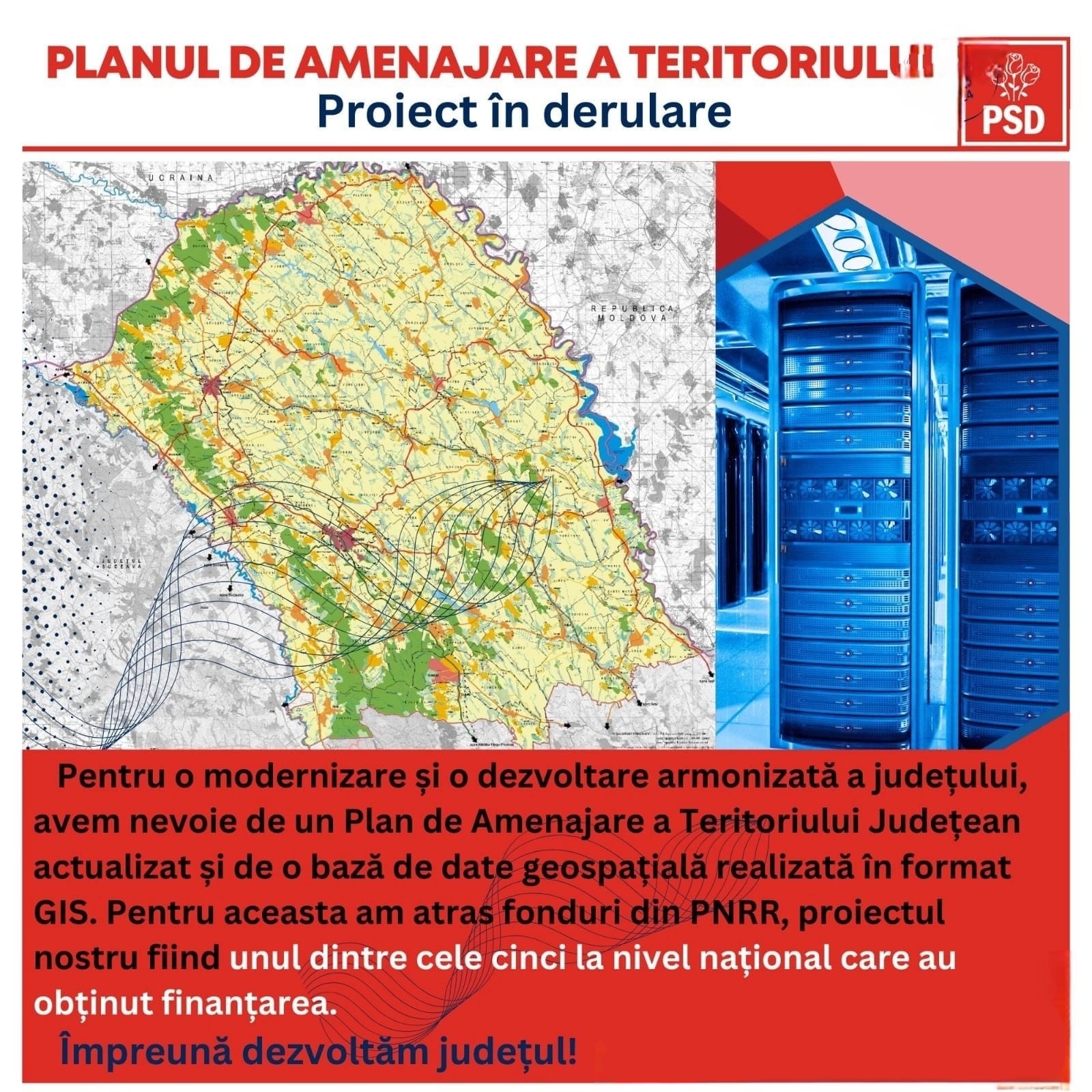 De asemenea, Planul de Amenajare a Teritoriului Județean (PATJ) și transpunerea lui în format GIS sunt tot proiecte moștenite. În 2022, CJ Botoșani a fost unul dintre cele cinci consilii județene care au obținut finanțarea PATJ din PNRR.