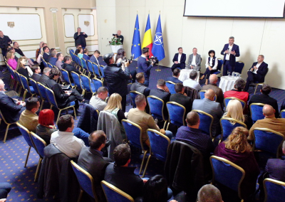 Timp de o oră, el a vorbit despre învățământul dual, autostrada A7, conectarea județului Botoșani la autostrada Moldovei, cota unică de impozitare, TVA-ul și accesul mediului de afaceri la fonduri europene.