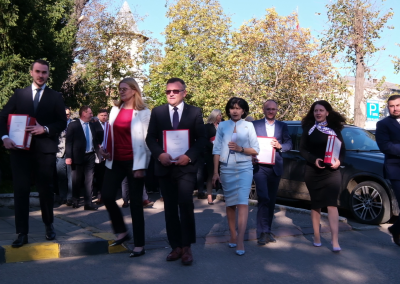 Însoțiți de peste o sută de social-democrați, primari, consilieri, directori sau simpli membri, cei 13 candidați la Senat și Camera Deputaților au depus și dosarele cu listele de susținători care conțin peste 43.000 de semnături..