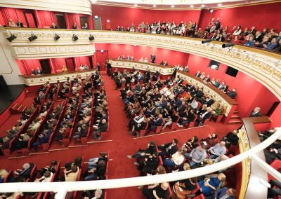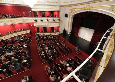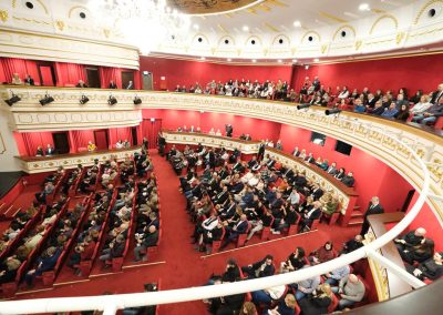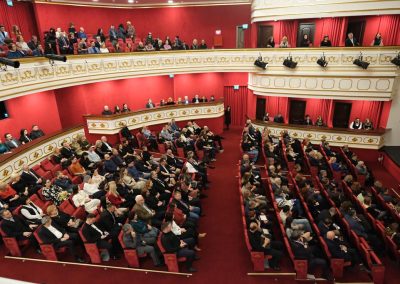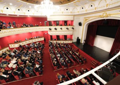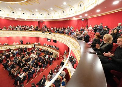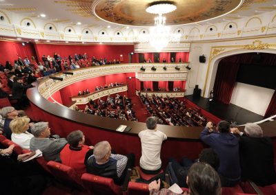 Clădirea, ridicată din colectă publică, a fost inaugurată în 21 decembrie 1914. Redeschiderea templului artei a fost programată la fix 110 ani de la acest moment, cu festivități elegante și o premieră teatrală, prezentate publicului două zile consecutiv, pentru a oferi șansa mai multor spectatori să fie martori ai acestui eveniment cu adevărat istoric.